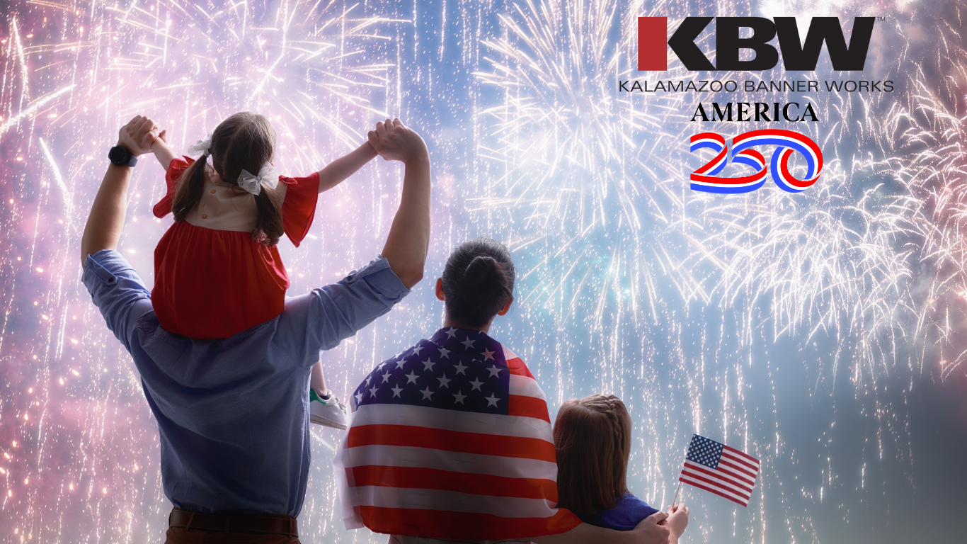 Kalamazoo Banner Works proudly introduces our America 250th Street Banner Collection, designed to bring communities together in celebration. Crafted from premium Sunbrella® fabric and 22 oz. Block out Vinyl, digitally printed for lasting vibrancy, these banners are perfect for downtown streets, parades, and patriotic events.