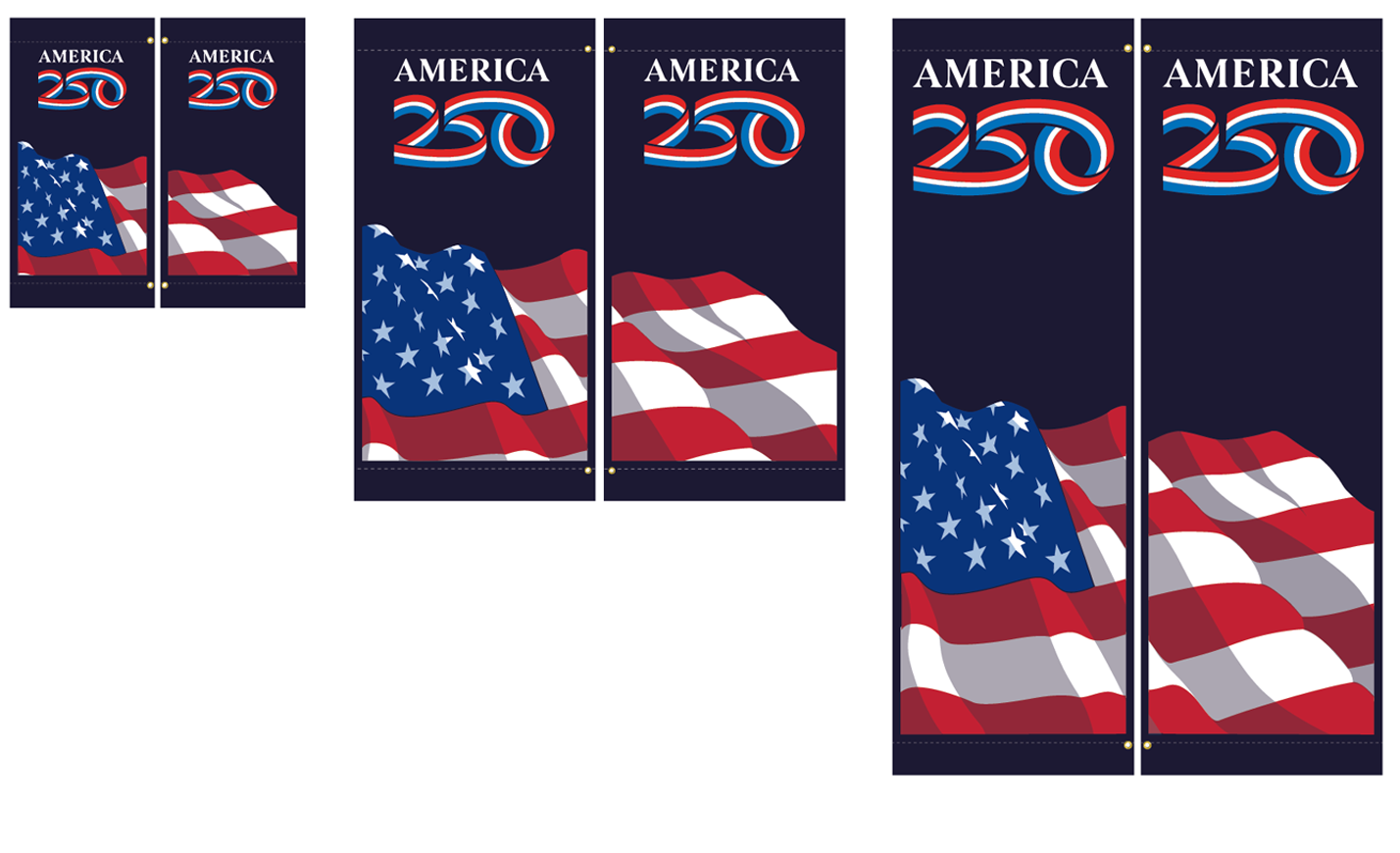Honor a milestone moment in American history with the Navy Patriot Street Banner, designed to commemorate America’s 250th Anniversary – Summer 2026. This striking banner features a timeless patriotic design digitally printed on Captain Navy Sunbrella® fabric, delivering rich color, exceptional durability, and long-lasting performance in outdoor environments.